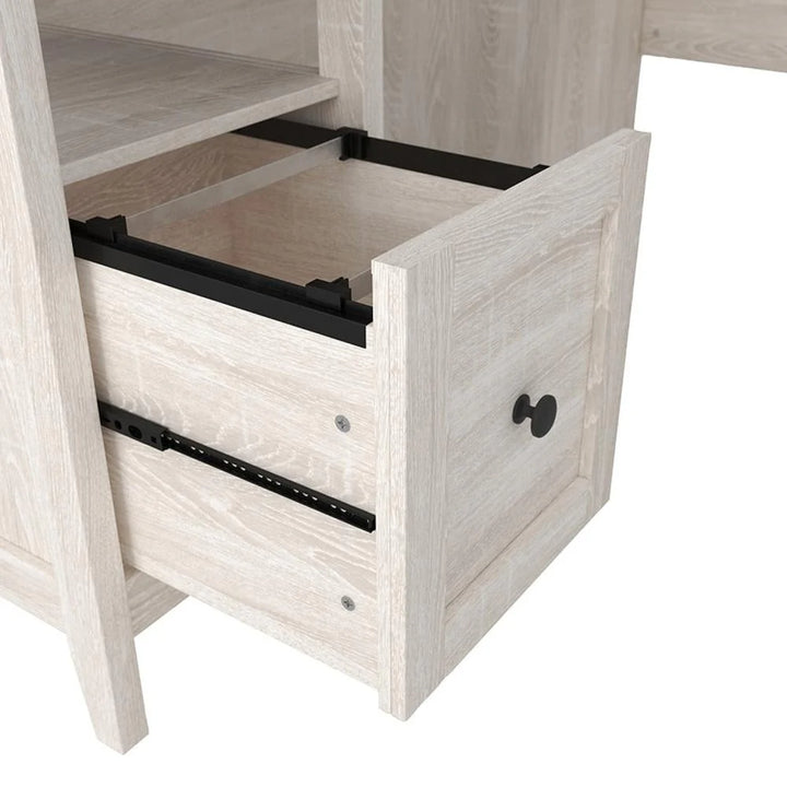 Work efficiently and hassle free in your office or home on this versatile desk. Crafted from an engineered wood frame in a gray and white finish, it features a rectangular top complemented with a file drawer, along with wire management holes. Supported on chamfered style legs, it depicts subtle wood grain details for a nature inspired appeal.