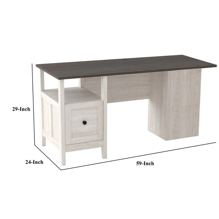 59 Inch Rectangular Home Office Wood Desk, File Drawer, Gray, White