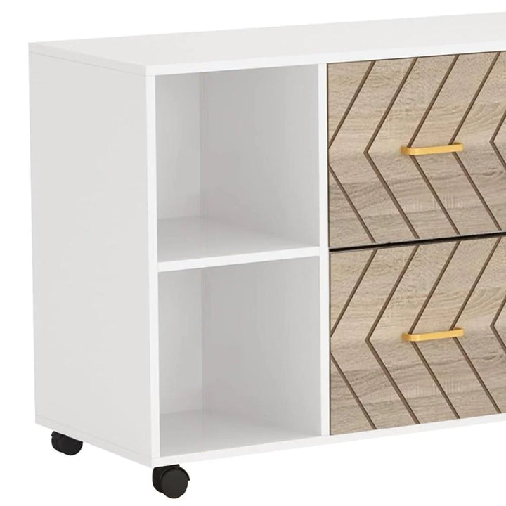 File Cabinet, 4 Storage Shelves, 2 Brown Drawers, Wheel Base 39 Inch