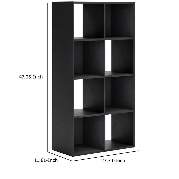 Zayla 48 Inch Tall Wood Bookcase Organizer, 8 Cube Compartments, Black